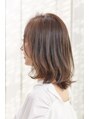 鎖骨ラインのボブレイヤー。低めに入ったレイヤーが軽やかに動くように切っていて、ふんわりしたひし形シルエットが大人かわいいです。ハイライトでより立体感を出しています。