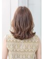 華やかなミディアムスタイル。ベースを外ハネにする事で、抜け感が出てバランスが良いアイラインシルエットになります。カラーは明るめのヌードベージュ。アレンジしてもかわいい顔まわりのカットにこだわりあり。