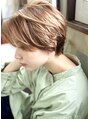 似合わせ小顔ハンサムショート。丸み,くびれスタイルでスッキリ&小顔感を演出♪人気のくすみベージュで上品&透明感UP♪髪質によってはデジタルパーマもおすすめ。大人可愛いスタイルです【ブックマークしてご掲示下さい】錦糸町 人気 白髪染め ヘッドスパ
