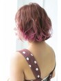 あごラインのグラデーションでカット。バングは軽めの仕上がりに。毛先をブリーチで色を抜いた後、全体は8トーンのピンクパープルをのせて、毛先にはビビットなピンクをオンカラー。池袋 池袋東口