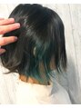 暗めのベースにインナーを一度ブリーチして、鮮やかなサファイアブルーを乗せたオシャレヘアです☆流行りのインナーカラーオススメです!