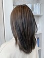 立体感が出るローライト。今回は目立たせるために少し太めに入れました。全体は透明感たっぷりのグレージュカラーでしっかりくすませました。ストレートでも巻いても可愛いヘアスタイルです!!