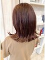 韓国風赤みカラー。可愛いチェリーピンクカラー(●´ω`●)ブリーチなしでしっかり赤みを入れて作りました。ツヤ感もしっかりあり、トレンド感満載♪♪切りっぱなしボブに外ハネスタイルがさらに可愛いです。
