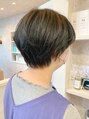 暗髪すっきりショートスタイル。黒に近いディーブブルーブラックカラー。青みもあって透明感もあって落ち着いたカラーです。襟足すっきりショートで耳かけするとタイトに!!ピタっとショートもオシャレです。ショートスタイル、めちゃくちゃ人気です!!!