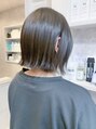 可愛い切りっぱなしボブ。ぶつ切りボブです。ぱつんとしたラインが可愛い!!!アイロンで外ハネ仕上げにするとさらにぱつんと感が出ます。カラーはブルーグレージュカラーです。透明感もあって暗めトーンでもめちゃくちゃ綺麗なカラーになってます。
