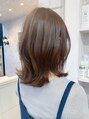 表面にレイヤーが入った軽く動きがしっかりでるヘアスタイルです。コテで外ハネ仕上げにするとすっきりくびれができます。内巻き仕上げにするとふんわり軽い雰囲気に。カラーはブラウンカラーでツヤツヤ、柔らかさがあります。秋冬人気なカラーです!!!