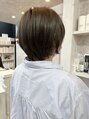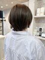 襟足スッキリなショートボブスタイルです。丸みがしっかりあって、どの角度から見ても綺麗なシルエット!!!スタイリングも簡単なオススメヘアです。カラーはくすみカラーで、しっかり青みが入ったグレージュです。透明感もしっかりあります。