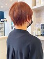 丸みマッシュショートです。ツヤツヤふんわりエアリーなスタイル。人気ショートは耳かけでガラッとイメチェンできます。インパクトがあるオレンジカラーでオシャレ感up!!!ラフな仕上げで決まります。秋冬カラーです。