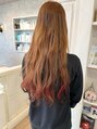 かわいいデザインの狐カラー♪♪スーパーロングヘアのデザインカラーになります(^^)毛先にオレンジとブラックを入れて巻いてあげればこなれた印象に☆彡綺麗に伸ばすためのヘアケアもしっかりとお伝えしてます♪周りと一味違うデザインカラーお任せください!