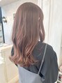コテ巻き風デジタルパーマで圧倒的長持ちな巻き髪を楽しむ☆彡パーマを仕込むことで普段の巻き髪が崩れにくいです!ほんのりピンクなブラウンカラーは血色良く、艶っぽく見せてくれます♪斜めにカットした前髪でスッキリ見せながらも大人かわいい印象に(^^)