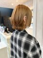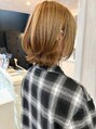 動きがかわいい外ハネレイヤーボブスタイル♪♪軽め質感の切りっぱなしボブに少しレイヤーを入れてくびれ巻きがしやすいようにカットしました(o^^o)ブリーチなしのカラーで作る明るめハニーベージュでダメージレスに明るめな印象へ◎
