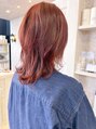 大人気な赤みカラー。レッドチェリーカラーです。しっかり赤みがあります。ツヤツヤに見えます。お肌との馴染みも抜群です!!!レイヤーウルフスタイルでふわっと軽い仕上がりに顔周りもしっかりレイヤー。アイロンやコテで巻くとさらに可愛さupです。