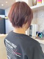 襟足スッキリタイトなふんわり丸みショート。耳かけしてスッキリ。冬ショートおすすめです。大人気なヘアスタイルです!!アイロンやコテ仕上げで簡単にスタイリングできます。暖色ピンクブラウンカラーでさらにツヤツヤに見えます。