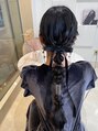 ミニウルフデジタルパーマチェリーブラウンヘアセット編み込み