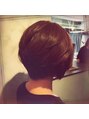 前下がりのボブシルエットにトップは動きを付けて後頭部が綺麗なシルエットに。正面から見るとひし形シルエットが小顔効果もあります!
