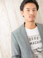 アップバングと濡れたような質感仕上げで、大人の男の色気を演出。黒髪で一段とシャープにカッコ良く!サイドのツーブロックでコンパクトフォルムにまとまっているので、小顔効果も◎。清潔感もありビジネスシーンでもGOOD!デキる男に仕上がります。