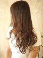 胸下の長さのローレイヤースタイルです。前髪はリップラインで厚めに作ります。間延びしてしまいやすい重めのロングでもこのポイントを作る事でふんわり感が簡単にできちゃいます!! COLORは、8トーンのブラウンベージュです。 グラデーションカラー。