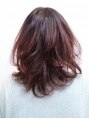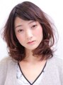 表面のみにレイヤーを入れ、前髪は目の上で設定しラウンドにカット。 コテで、フォワードとリバースを交互に巻き髪仕上げで。 カラーはハイライトでより動きを出してリズムカルに。