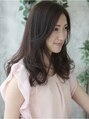 ゆるやかな前上がりのワンレンベースのローレイヤー。 長めのバングはアゴラインで。全体にナチュラルな厚み、重みを残しつつ、やわらかなアウトラインに仕上げた大人可愛いロングスタイル。綺麗なお姉さん!!