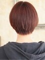 リップラインのマッシュボブにカットしたあとに襟足を短めにします。頭の丸みを矯正します。カラーは明るめのアプリコットアッシュで軽さと透明感を。