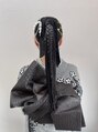 黒髪と黒のお着物に合うように、、!!タイトルなポニースタイルに細く三つ編みを入れて、飾りもシンプルに厳選したアイテムで仕上げました!