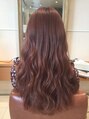 ベースを一度ブリーチしてからアプリコットローズをかぶせています。女性らしい深みと透明感を兼ね備えたカラーです^ ^ ブリーチをしたカラーは室内で見た時と野外で見た時の色味の印象がだいぶ変わるのでそこも楽しいポイントですね!