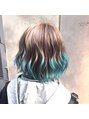 ホワイティアッシュからミントブルーの巻き髪ショート