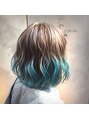 ホワイティアッシュに毛先ミントブルーのポイントカラーで清涼感ある夏のハイトーンカラー☆ブリーチ2回目安です。RISELにはダメージを最小限に抑えることのできる、ハイブリッドブリーチがございます!ハイトーンでも艶髪をキープしたい方にオススメです。