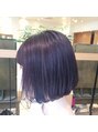 ベースが明るめのところに、濃いネイビーをいれています。色落ちとともにピンクぽさがででくる隠し味カラーがかわいいですよ♪ボブはカットラインは残しつつ量感調整をしっかりして、スタイリングしやすくなっています。
