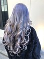 ハイブリッドブリーチでベースを白っぽく整えてから淡いブルーシルバーをオン。 ハイトーンは何回かに分けて痛みにくいブリーチでベースを整えるのが大切です。サイドの重さの足りない部分のみ片側7本ずつシールエクステを付けてスタイリングしやすい重さに