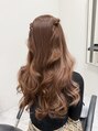 ハイブリッドブリーチ1、2回目安のピンクカラー。 スーパーロングでも傷みにくいブリーチを使う事で、綺麗にブリーチできます。 白い服が多い方、ガーリーな雰囲気の方にオススメです^ ^