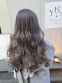 ブリーチ1~2回目安のラベンダーグレージュカラー。色落ちの過程がグレージュ→ベージュと長く楽しめ、褪色後も綺麗なベージュになるのでオススメのハイトーンカラーです。ハイトーンロングを綺麗に保つには定期的にサロンでトリートメントケアが大切です