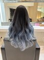 地毛カラーなしエクステでブルーグラデーションロングヘアUP