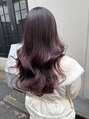 毛先にブリーチ履歴が残っていたお客様、履歴を活かしてラベンダーピンクカラーに。艶と華やかさがでる色味です。カットはワンカールでもまとまりやすく、巻いても綺麗な毛流れを作りやすいように顔まわりと表面にレイヤーを入れたロング。