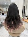 シールエクステを使ったインナーピンクの黒髪ロングヘアUP