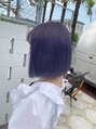 ★ブルーとバイオレットで作る濃いめラベンダー。色が落ちていく過程もキレイなのでオススメ♪ここまで色をシッカリ出すには、ベースとなる髪色をブリーチでムラなくトーンアップする事が大切。ハイトーンは少しずつ育てて行こう!ボブのハイトーンも可愛い★