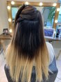 ★初めましてのお客様。ビフォアの状態が困難。毛先の明るい部分は暗めにリセットしてハイライト。シャンプーを繰り返すたびに徐々に明るくなる、色落ちを楽しめるスタイル♪★
