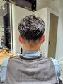 刈り上げとツーブロックを合わせたフォーマルなスタイルです。パーマをかけておりまして、強めではなく毛先が流れる位にしたのがポイントです。キメ過ぎないけどカチッとしたい方にオススメです。