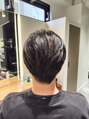 ナチュラルに切り上げたセンターパートです。刈り上げも切りすぎずナチュラルに、顔周りは長さを残してサラッと感を演出。バームやオイルでサラッとセットするのが良いです。スタイリングに手間をかけずにセットできるスタイルとなっております