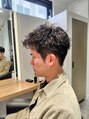 サイド襟足はスッキリ刈り上げてトップは長さを残しパーマで演出。毛先は軽くワックスやジェルで簡単にセットが出来た上、扱いも簡単です。スッキリしつつも動きを求めたい方にオススメのスタイルです。パーマは必須かと思います。
