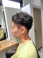 ツーブロックに刈り上げのさっぱりとしたスタイルにハードなパーマをかけ、タイトに仕上げております。ラフなスタイルからスーツでピシッとしたい場合なども万能なスタイルかと思います。髪質に応じてパーマは必須かと思います。