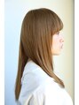 ストレートのセミロングスタイルです。極力セニングで軽さを出し、毛先はスライドカットで先細りにしていますので手ぐしでまとまりつつも乾かせばサラサラにまとまるスタイルです。暗くて地味な印象になりたくない方にオススメです。【中山】