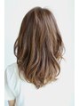 全体的に軽さを出したスタイルです。アイロンで巻いて動きをつけています。トップと顔まわりにレイヤーをいれて軽さを出しているのもポイントです。カラーは8トーンのマットアッシュで落ちついたイメージと透明感をもたせました。【中山】
