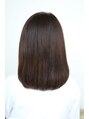 髪を暗めにしてツヤ感を強調したミディアムのストレートスタイルです。顔周りはレイヤーを入れて顔を包みこむように切っていますので小顔効果も期待できます。毛先を少し重めにしていますので、乾かすだけで簡単にまとまるヘアスタイルです。【中山】