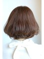 前髪なしの柔らかな質感が特徴のボブスタイルです。かきあげバングもできますし、アイロンで巻いて動きをつけてラフに動かすのも簡単です。量感は重くなりすぎないように表面とアウトラインを軽くしています。【中山】