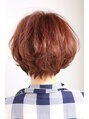 ショートボブのスタイルにカールアイロンで毛先にのみ動きにかけた外ハネのスタイルです。カラーは8トーンのローズピンクブラウンでツヤ感のある赤系カラーをチョイス。ストレートでは物足りないという方にオススメのスタイルです。【中山】