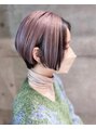 前髪なしツートンショート/ピンクベージュ/インナーローライト