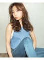 センターパートのセミロングスタイルです。。トップにボリュームを出して大人っぽい女性らしさを。。カラーはマットグレージュに。。