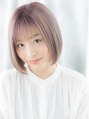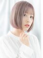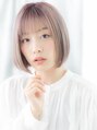 ベージュピンクの透けバングぶつ切りミニボブa古河10代20代30代