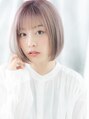 ミルクティーピンクの透けバングぶつ切りボブh古河10代20代30代
